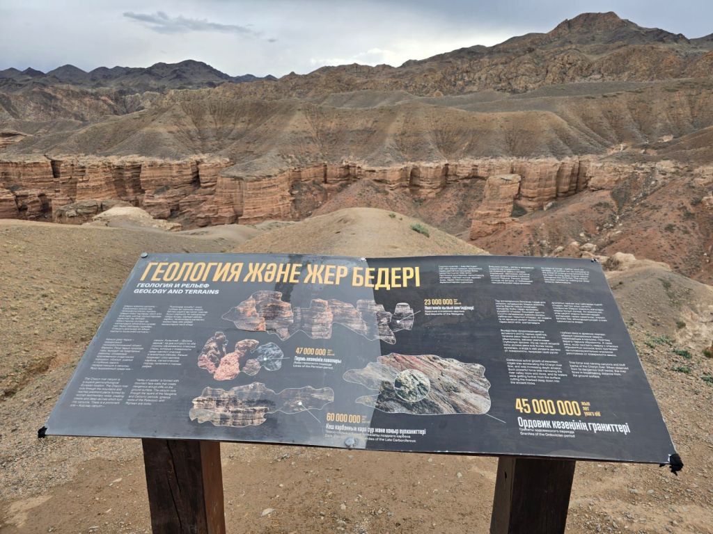 Tujuan kami berikutnya adalah Charyn Canyon. Lokasinya berada ditengah antara Saty dan Almaty, kota terbesar di Kazakhstan. Charyn Canyon bentuknya mirip dengan Grand Canyon di Nevada, Amerika Serikat. Warna coklat kemerahan mendominasi tebing-tebing di Charyn Canyon ini. Dari visitor centre, kita berjalan selama 10 menit untuk melihat viewing point pertama. Dari dekat, terlihat garis-garis alur sepanjang dinding tebing. Jutaan tahun lalu, Charyn Canyon merupakan bagian dari lautan, yang kemudian terdorong ke daratan akibat proses pergerakan lempeng bumi selama ratusan juta tahun. Menakjubkan melihat jejak lautan purba di tengah daratan benua Asia ini.