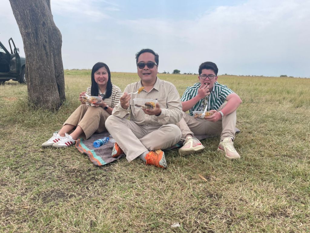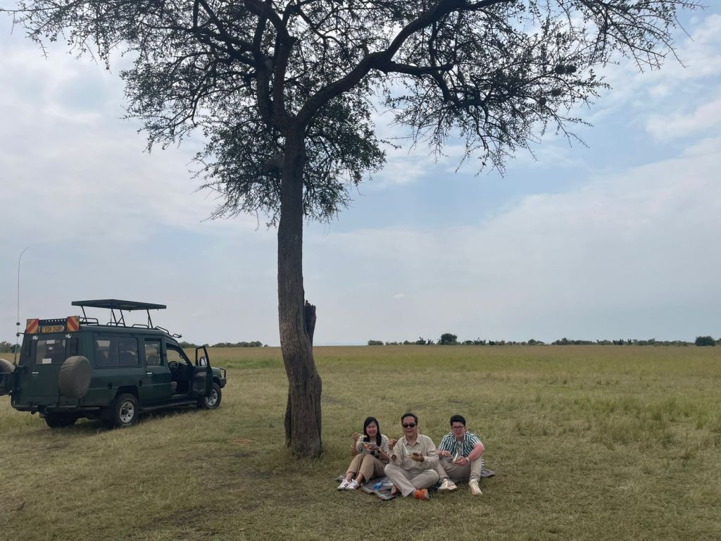 Hari ini adalah puncak dari perjalanan kami di Kenya! 26 Januari 2025, pukul 05.00 pagi, kami dijemput tour operator untuk menuju Masai Mara National Reserve, salah satu taman nasional paling terkenal di Afrika. Dalam berbagai publikasi, Masai Mara sering dinobatkan sebagai taman nasional terbaik untuk melihat “The Big 5”, yaitu Singa, Badak, Macan Tutul (Leopard), Kerbau Liar (Buffalo) dan Gajah. Setelah menempuh perjalanan sekitar 2 jam dari Nairobi, kami berhenti sejenak untuk sarapan di Narok Town pada pukul 08.00. Kami melanjutkan perjalanan dan sekitar pukul 10.00, akhirnya kami tiba di pintu gerbang Sekenani, Masai Mara dan memulai game drive safari. Setelah membayar tiket masuk taman nasional, guide kami membuka atap jeep yang kami tumpangi, agar dapat melihat pemandangan dan hewan secara lebih terbuka. Kamipun memulai petualangan jeep safari di taman nasional Masai Mara.