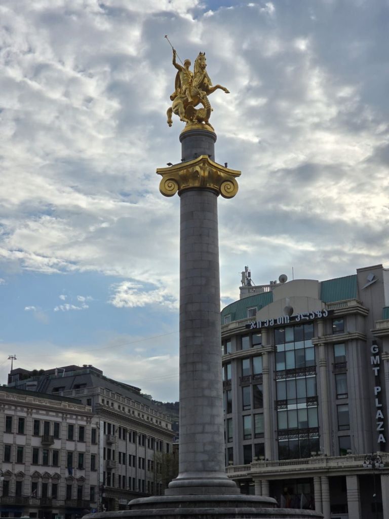 Setelah menempuh perjalanan sekitar 2 jam dari Gudauri, sore harinya kami tiba di Tbilisi, ibukota Georgia, dan check-in di Glarros Hotel Tbilisi Old Town. Hotel ini sangat strategis dan dekat dengan banyak destinasi wisata kota tua. Setelah rampung check in, kami segera mencari tempat untuk makan, karena siang tadi tidak sempat makan di Gudauri. Tak jauh dari hotel kami ada mall yang cukup besar, Liberty Square mall. Kami makan sore di KFC yang ada di mall ini. DIbandingkan dengan Azerbaijan, harga-harga makanan dan souvenir di Georgia lebih murah. Selesai makan, kami menyempatkan berkeliling di sekitar Liberty square dengan tugu St George sebagai titik sentralnya, juga menyempatkan jalan kaki keliling kota tua sebelum kembali ke hotel untuk beristirahat.