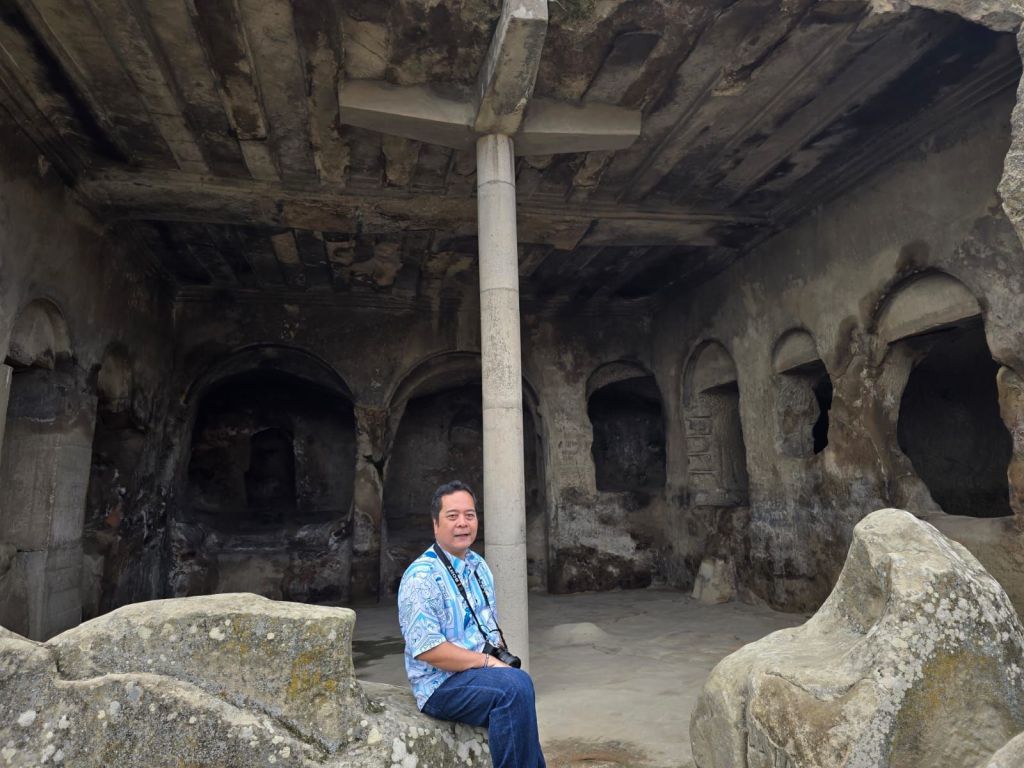 Sekitar jam 9.30, Gega menjemput kami di hotel, dan mengajak kami mengunjungi situs arkeologi Uplistsikhe, kota kuno dari zaman sebelum masehi yang dibangun di atas batu. Gua-gua alami, lorong-lorong sempit, dan struktur kuno memberi gambaran tentang kehidupan masa lampau di Georgia. Tempat ini terasa seperti museum hidup di tengah alam. Selama kami berada di Uplistsikhe, kami ditemani guide lokal yang menjelaskan sejarah Uplistsikhe. Wilayah ini sudah dihuni manusia sejak 2000 tahun sebelum masehi.
