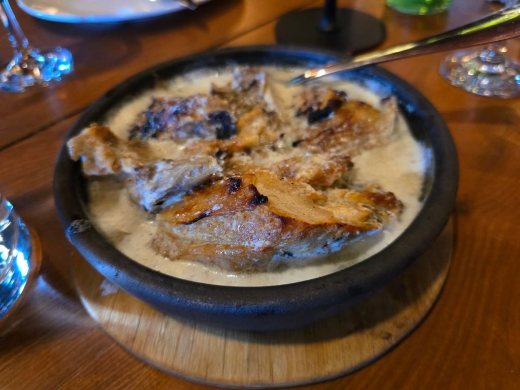 Kami makan siang di Chateau Uplistsikhe, restoran lokal dengan pemandangan bukit dan kebun anggur lokal yang sangat menyegarkan mata. Gega merekomendasikan beberapa makanan khas Georgia seperti Khinkali dan Chashushuli (beef stew).