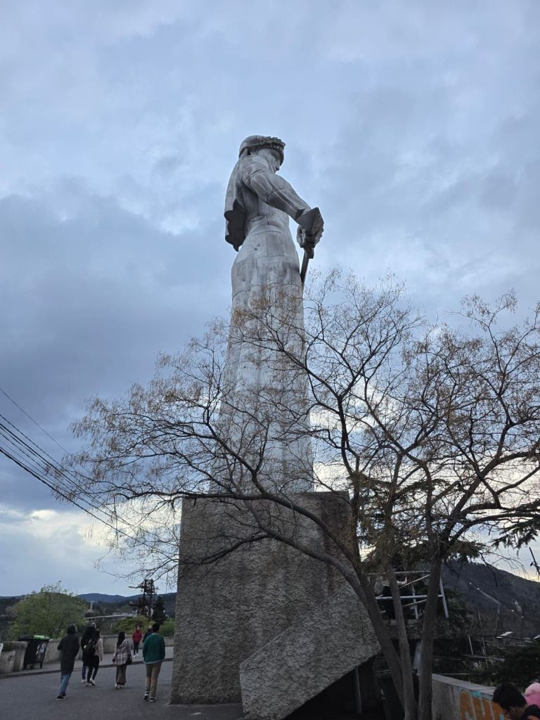 Guide kami Gega menginformasikan bahwa seniman tersebut hafal hampir seluruh lagu kebangsaan dari negara-negara dunia. Kami lanjut berjalan ke arah patung Mother of Georgia. Patung ini berbentuk wanita yang memegang pedang dan cawan. Dibangun pada era Uni Sovyet pada tahun 1958, patung ini memiliki ketinggian 20 meter dan berdiri di puncak bukit. Dari platform di sekitar patung ini, kami menikmati panorama kota tua Tbilisi yang indah saat matahari mulai tenggelam.