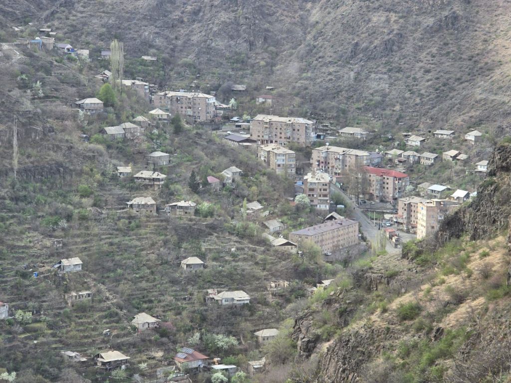 Kami berhenti untuk makan siang di pinggir kota Alaverdi. Ada sebuah restoran yang terletak di tebing dekat gua alam yang juga digunakan sebagai gereja. Mendz Er cave restaurant namanya. Kami mencicipi masakan rumahan khas Armenia, seperti khorovats (barbeku daging) dan roti lavash hangat. Rasa makanan Armenia terasa lebih berbumbu dan lebih enak dibandingkan makanan Georgia dan Azerbaijan. Pemandangan dari restoran ini cantik sekali, kita bisa melihat pegunungan di sekitarnya, juga bisa melihat kota Alaverdi dari ketinggian, jika dilihat dari jauh, kota Alaverdi tidak terlalu kelihatan suasana sunyi dan mencekamnya.