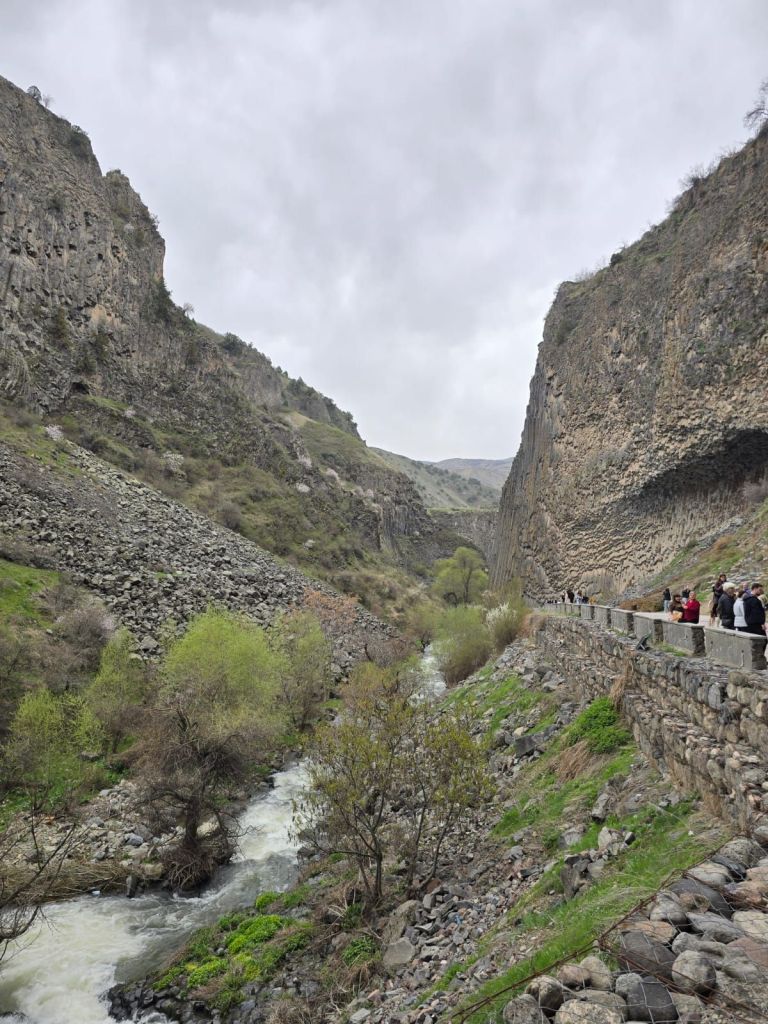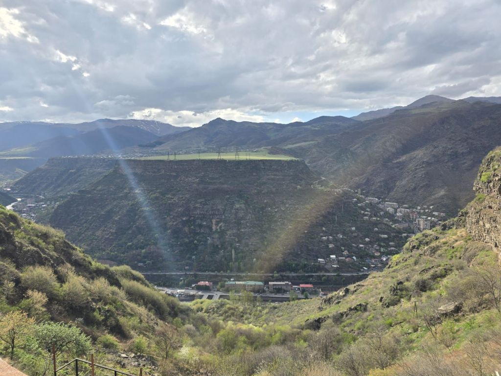 Memasuki hari kedelapan perjalanan kami di Caucasus, Jumat 4 April 2025, kami bersiap meninggalkan Georgia menuju Armenia. Sekitar jam 10 pagi, kami berangkat dari hotel Glarros Old Town menuju Armenia. Setelah menempuh perjalanan sekitar 1,5 jam, kami tiba di Sadakho, kota perbatasan antara Georgia dengan Armenia. Hubungan politik dan bisnis antara Georgia dan Armenia cukup baik, sehingga mobil warga dari kedua negara bisa melintas di perbatasan darat ini, saat keluar dari imigrasi Georgia, kami tidak perlu menurunkan barang-barang bawaan di mobil, namun demikian, saat memasuki imigrasi Armenia, bagasi kami harus dibawa turun untuk pemeriksaan bea cukai. Proses imigrasi masuk Armenia relatif cepat, tak sampai 10 menit, keluarga kami telah melewati imigrasi Armenia. Namun untuk mobil yang kami tumpangi, harus menjalani proses asuransi, sehingga kami harus menunggu sekitar setengah jam sampai guide kami Gega menyelesaikan administrasinya.