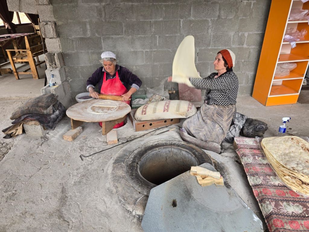 Sekitar 5 menit dari Geghard monastery, kami diajak mampir ke kedai warga yang membuat roti tradisional Armenia, lavash. Ibu-ibu di kedai ini mengolah adonan terigu dengan cara tradisional dan rotinya dipanggang di tungku tanah liat. Rasanya gurih dan sedikit asin dengan tekstur tipis dan crunchy.