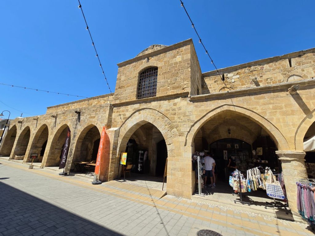 Setelah melewati perbatasan, suasana terasa berubah drastis—arsitektur Ottoman, masjid besar, dan suasana pasar tradisional menciptakan atmosfer berbeda dari sisi selatan. Destinasi pertama saya adalah Buyuk Han, sebuah karavanserai abad ke-16 yang kini menjadi pusat budaya dan kerajinan tangan. Tempat ini dulunya menjadi penginapan para pedagang dan kini dipenuhi toko seni, galeri, serta kafe bergaya Ottoman. Di wilayah TRNC ini mata uang yang lebih banyak dipakai adalah Turkish Lira, meskipun Euro juga diterima secara luas.