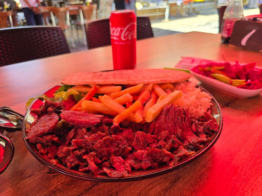 Setelah shalat Jumat, saya melanjutkan kunjungan ke Belediye Pazari, pasar tradisional yang menjual rempah, buah kering, hingga kerajinan tangan, dan menikmati suasana lokal di Ataturk Square serta Nicosia Open Market. Untuk makan siang, saya mampir ke Kelebek Restaurant, restoran sederhana namun otentik yang menyajikan kuliner khas Turki. Saya memesan chicken kebab yang disajikan dengan nasi, roti pipih, dan salad segar—porsi besar dengan rasa yang kaya rempah.