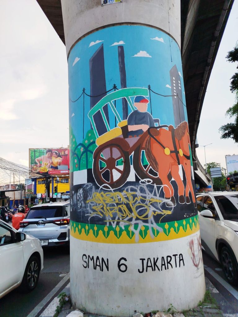 Sore itu, menjelang maghrib, mobil yang saya tumpangi berhenti di simpang empat Pasar Cipete, Jakarta Selatan. Lampu merah menyala, jalanan masih riuh, tapi waktu seolah melambat. Di tengah jeda itu, mata saya tiba-tiba tertumbuk pada sebuah mural di sudut dinding-gambar kusir delman, karya siswa SMAN 6 Bulungan Jakarta. Seketika, ada rasa “klik”. Bukan Cuma karena gambarnya menarik, tapi karena sekolah itu adalah tempat saya pernah bertumbuh, jatuh-bangun, dan belajar menjadi diri sendiri.